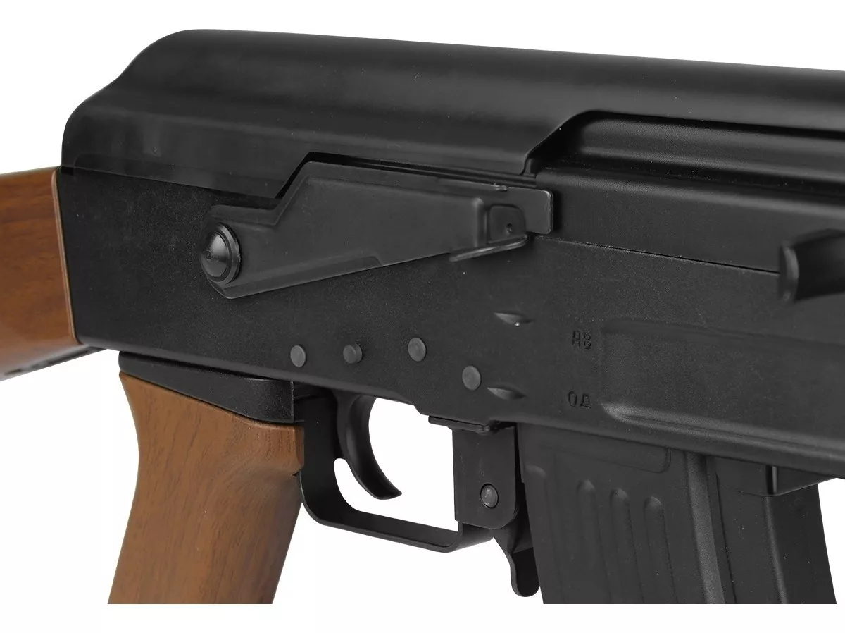 O Rifle Airsoft Kalashnikov modelo AK47 produzido pela G&G e importado pela Action-x, possui ação elétrica bivolt (110v-220v) e é denominado Full metal, pois possui a maior parte do seu corpo confeccionado em metal e outras específicas confeccionadas em polímero. A Versão original desse modelo foi criada em 1947 pelo russo Mikhail Kalashnikov dando-se origem na União Soviética logo após o fim da Segunda Guerra Mundial, e foi inspirado no fuzil de assalto alemão Sturmgewehr 44, tornando-se então o fuzil mais fabricado de todo os tempos. Seria indispensável o mundo do Tiro Esportivo ter a versão dessa arma tão renomada em Airsoft, por isso sem dúvidas é um modelo muito requisitado por vários atiradores. Esse modelo em específico possui um sistema denominado Blow Back (onde o ferrolho faz um movimento para frente e para trás, tornando a réplica mais realista) e também o sistema de ajuste de hop-up, onde basicamente o atirador pode ajustar o curso da bbs mais para cima ou para baixo. Seu magazine comporta incríveis 500 bbs e é a opção perfeita para jogadores que participam de batalhas ou até mesmo colecionadores que buscam peças exclusivas de alta qualidade e realismo.